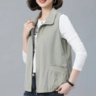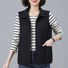 Meet Élodie, your go-to spring and autumn layering piece. This sleeveless vest features a relaxed fit and a classic turn-down collar that adds a touch of casual elegance to everyday outfits.
