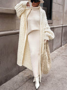 Cozy up in the Ivory Hold Me Close Shawl Collar Cardigan, a must-have for cooler days. Handmade with soft cable-knit fabric, it features a chic shawl collar and bell sleeves with fitted cuffs, offering both comfort and style.